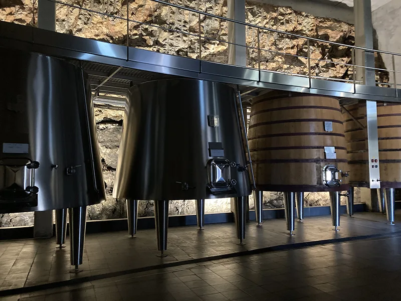 De wijnkelder is in de rotsen uitgehouwen, om zo optimaal van de zwaartekracht gebruik te maken bij het verwerken van de druiven en om een zo constant mogelijke temperatuur te hebben.